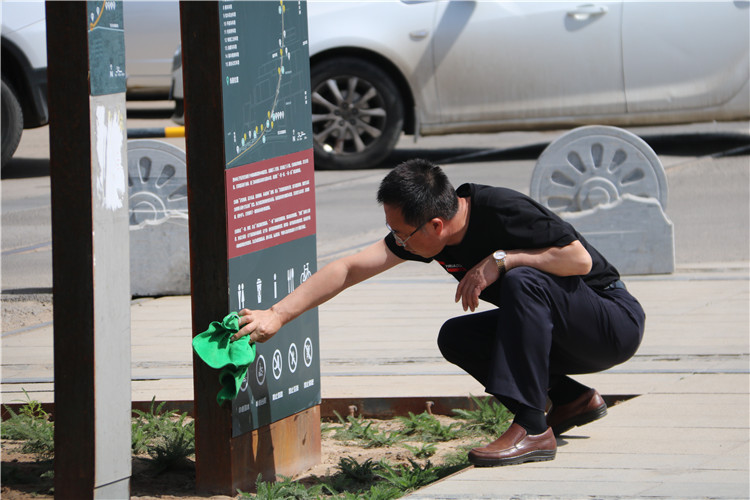 此次活動主要圍繞139記憶公園的“文苑街-安寧街城市休閑段”進行清掃,對綠化帶內垃圾和鐵路線路及周邊雜物進行清除,并對公園內休息長椅、指示牌、電箱、燈箱等進行擦拭。